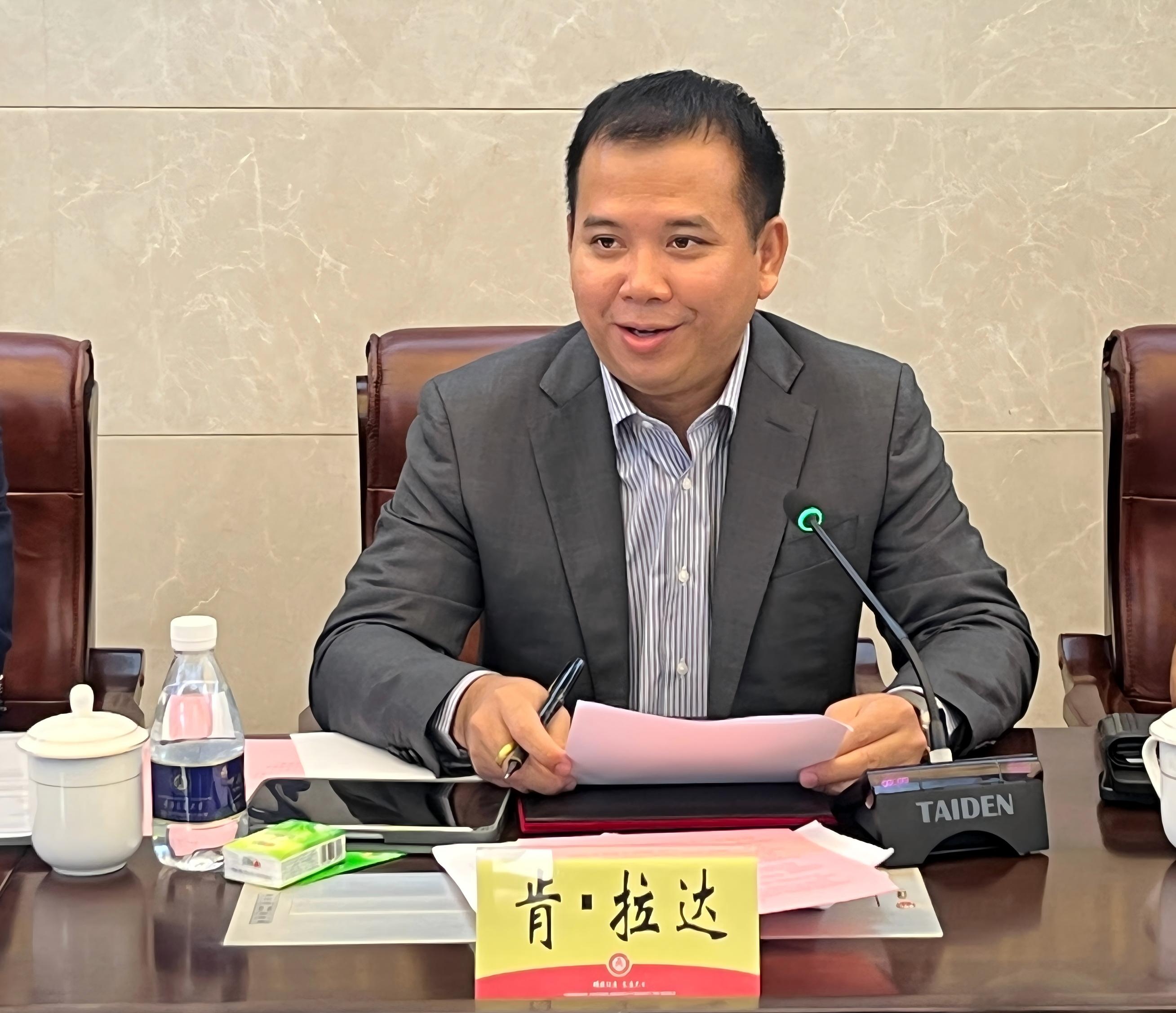 校党委常委罗均代表学校对柬埔寨嘉宾的到访表示热烈欢迎,并简要介绍了学校的建校历史和发展历程。他提及上世纪60 年代中国援建柬埔寨“7号公路”的佳话,称其不仅是跨越山川的交通要道,更是两国人民友谊的见证,而此次柬方到访,将为中柬教育合作注入新活力,期待双方在科学研究、人才培养、文化互鉴中探索更多合作可能。