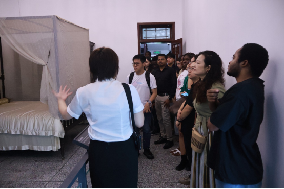 随后,师生移步至桂园旧址。这座位于中山四路65号的小院,因庭院中7株百年桂花树得名,1945年重庆谈判期间,毛泽东、周恩来曾在此会晤各界人士,签署《双十协定》。留学生通过参观谈判会客厅,结合展馆内播放的历史影像资料,直观感受了中国共产党在争取民族和平、推动民主进程中的政治智慧与实践担当。