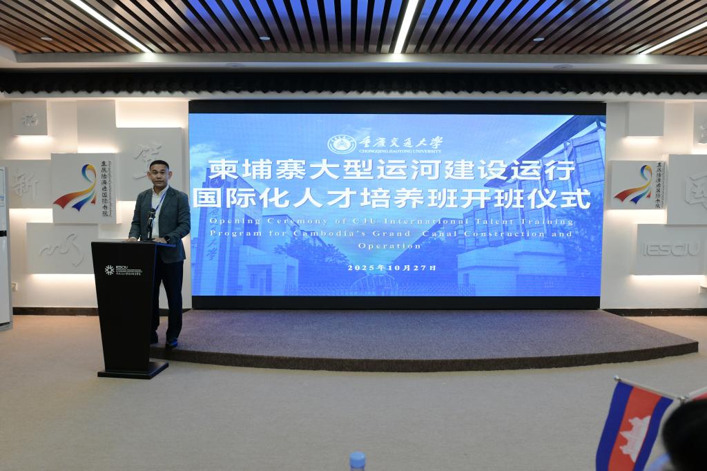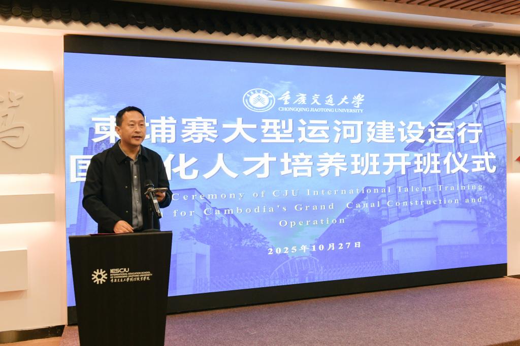 郑丹副校长在致辞中首先对柬埔寨学员的到来表示热烈欢迎。他指出,本次培训作为重庆市教委立项资助的“丝绸之路奖学金”项目,是中柬共建“一带一路”的务实举措。学校围绕“技术赋能、管理赋能、文化赋能”核心,整合河海、土木、航运、经管等学院的优质师资,为学员量身定制了“五位一体”的课程体系。课程内容不仅涵盖智能航道设计、生态修复、混凝土3D打印技术、智慧物流等领域先进技术,也融合了实地参访、案例讨论等多元教学形式,旨在切实提升学员在大型运河建设与运营中的实践能力与综合素养。