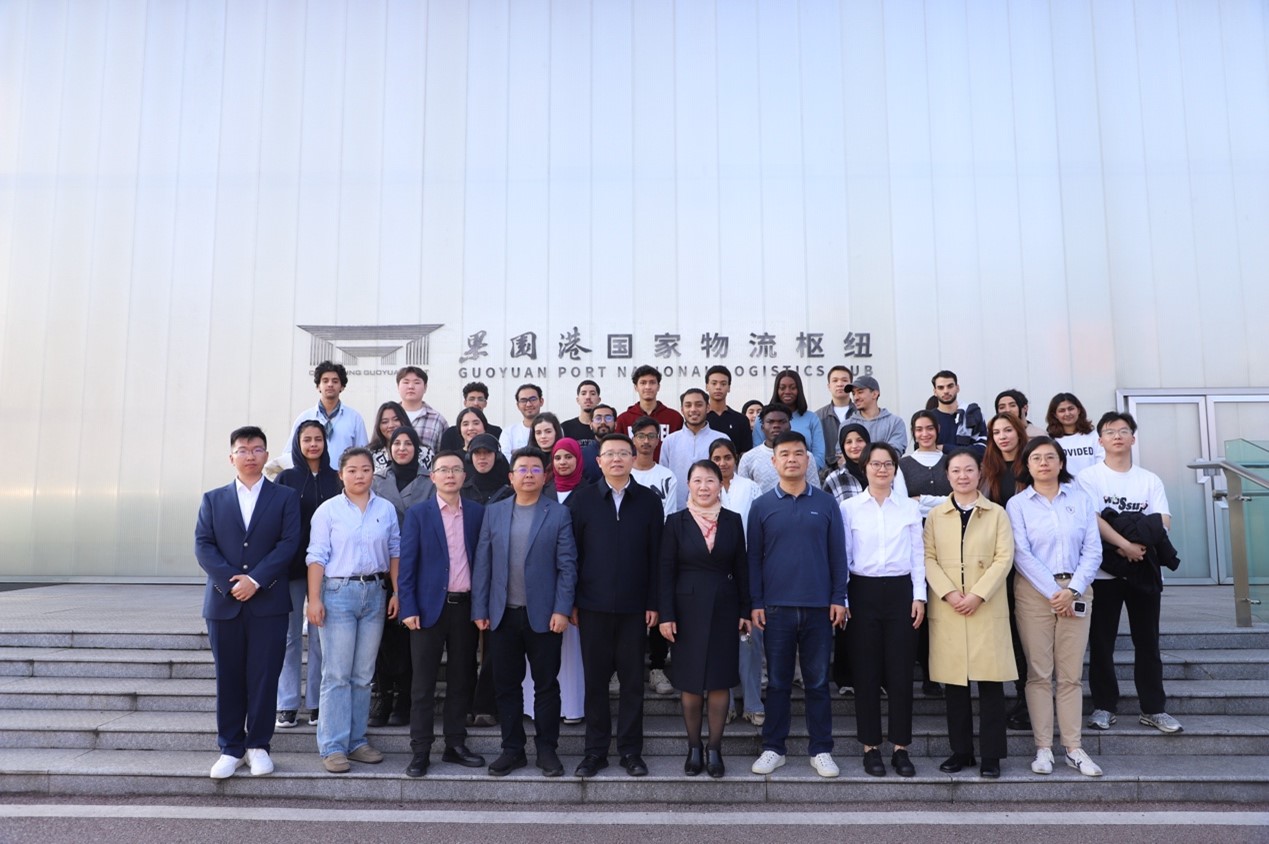 签约仪式后,“陆海通国贸英才班”国际学生参观了果园港。工作人员详细介绍了果园港的智能化作业流程,从集装箱的自动装卸到物流信息的实时跟踪,师生们深刻感受到了现代港口物流的高效与便捷。