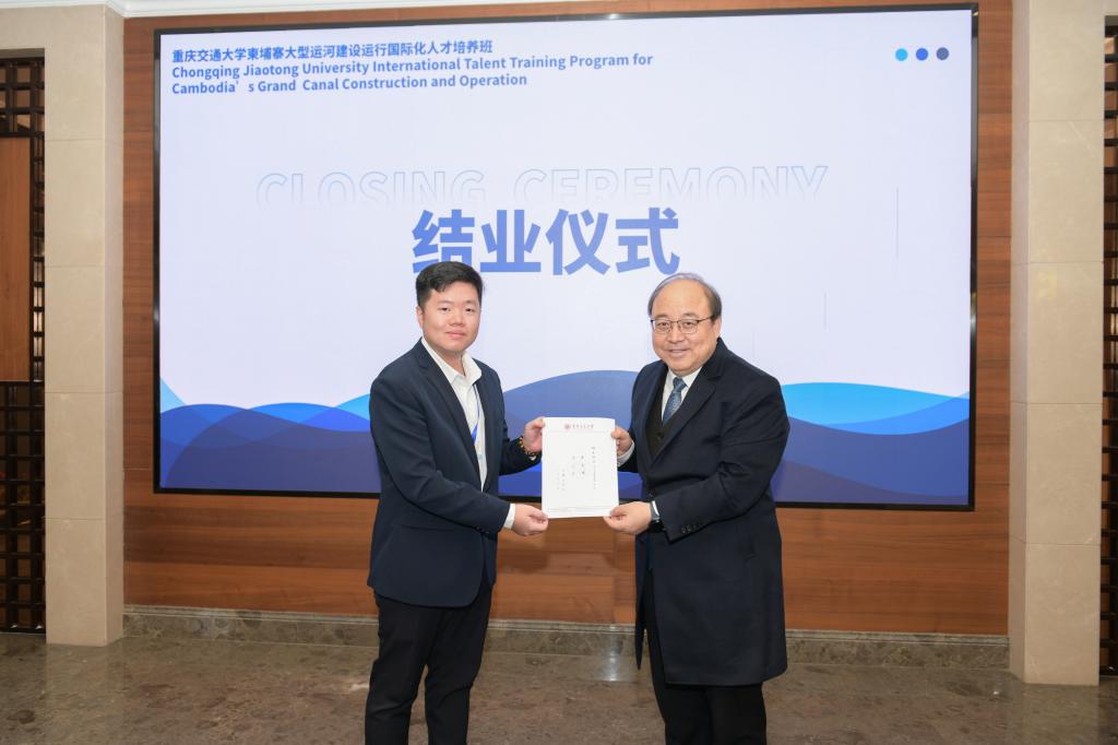 结业证书的颁发为本次培训画上了圆满的句号,但我校与柬埔寨在交通基础设施领域共绘发展蓝图的新篇章才刚刚开启。以此次培训为新的起点,重庆交通大学将继续秉持“明德行远、交通天下”的校训,与柬埔寨同仁一道,携手为德崇富南运河的顺利实施、为柬埔寨区域物流枢纽愿景的实现、为中柬命运共同体的建设注入更多智慧与力量,让合作之花结出友谊之果。