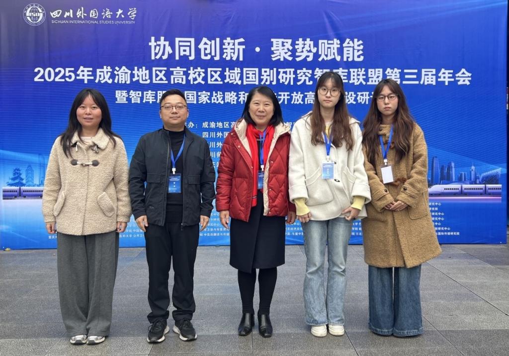 11月23日,2025年成渝地区高校区域国别研究智库联盟第三届年会暨智库服务国家战略和内陆开放高地建设研11月23日,2025年成渝地区高校区域国别研究智库联盟第三届年会暨智库服务国家战略和内陆开放高地建设研讨会在四川外国语大学举行。本次盛会汇聚了来自成渝地区近50所高校、60余家区域国别研究机构约150名专家学者,围绕区域国别研究建设展开深入交流。我校国际教育学院院长、欧洲研究中心常务副主任余元玲、欧洲研究中心副主任雷洋和外国语学院副院长李翠英等研究人员及7名硕士研究生出席会议。