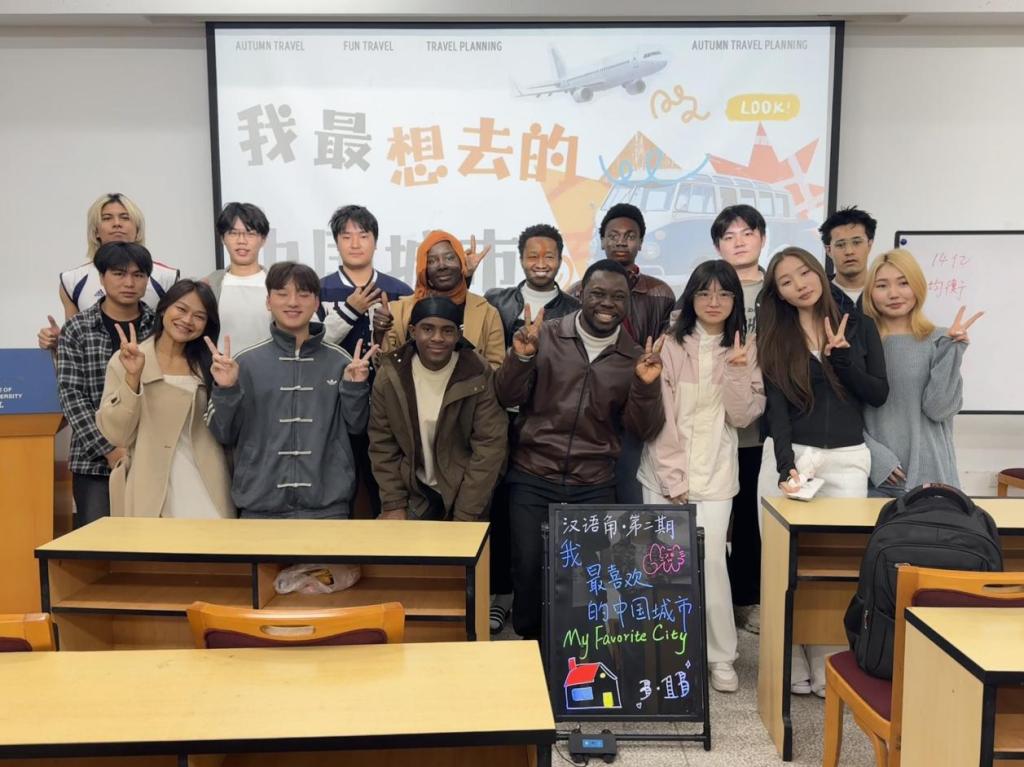 中外学生围绕活动主题,从城市风光、风土人情等方面分享见闻与感受。中国学生热情讲解城市魅力、教授汉语词汇与方言,留学生认真聆听、主动分享在中国的生活及旅行经历,现场欢声笑语不断。同时,“城市知识小问答”“趣味词语接龙” 等环节,让留学生在游戏中巩固了汉语知识,同时也拉近了彼此距离。