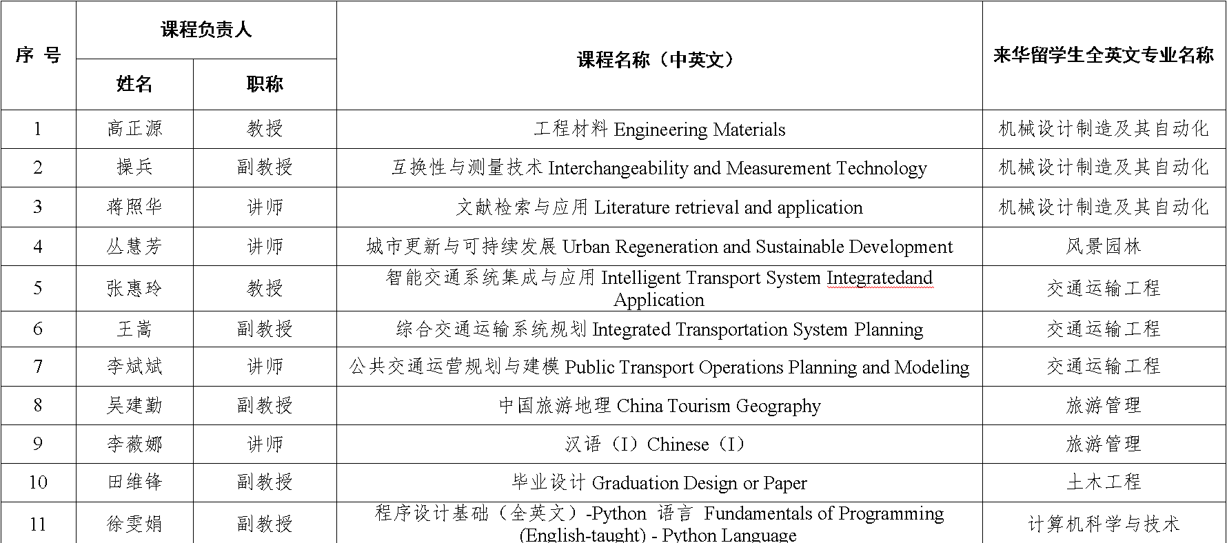 根据我校来华留学教育提质增效及全英文一流课程建设推进工作要求,经课程团队申报、教学单位筛选推荐及专家评审,拟确定《工程材料 Engineering Materials》等11门课程为2025年度校级全英文一流课程(面向来华留学生)并予以立项建设。现将相关信息公示如下: